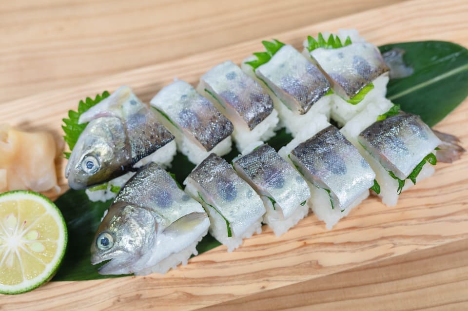 捌いて塩をして、サッと酢締めしたフレッシュなえのはを使用した姿寿司。